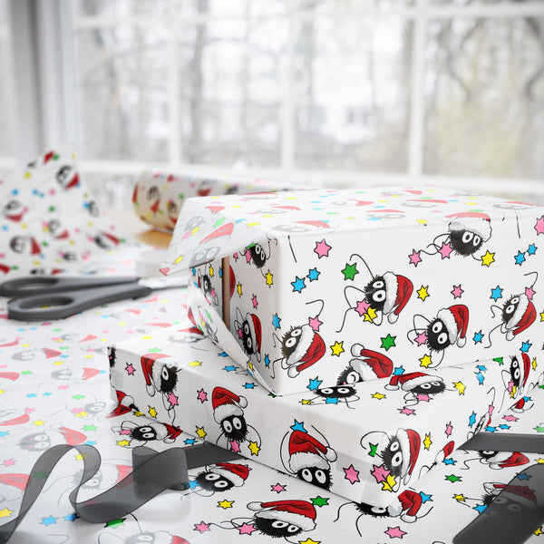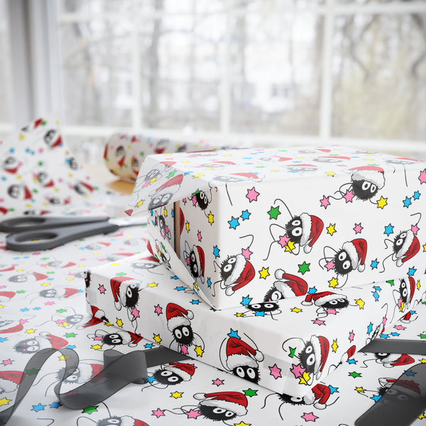 Bright, playful wrapping paper printed on sturdy 90gsm fine art paper. The design repeats a cheerful cartoon character in holiday colors across a crisp white background, bringing a lively, nostalgic energy to every package. Choose a glossy sheen for vivid, reflective colors or a smooth matte for a soft, artsy look. Available in three generous lengths to cover small boxes or large parcels; prints are one-sided and include a small white trim with production barcode and QR code at the edge. This paper folds and creases cleanly, making it easy to craft lively, hand-wrapped presents that feel personal and joyful.